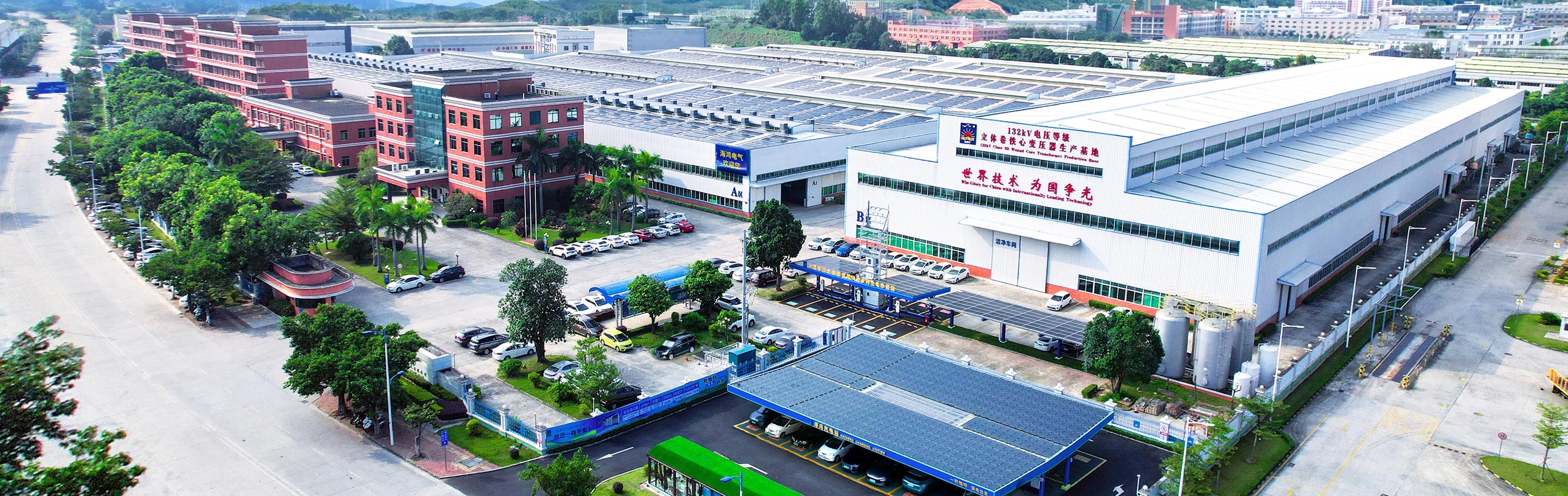 非晶合金立体卷铁心干式变压器横空出世; 定制生产多应用场景小型化双层箱变(光伏、充电、储能、路灯、高速公路); 九游会j9网站首页电气制造的南网首台1级能效110kV 63000kVA立体卷铁心变压器顺利通电,可靠运行; 自主成功研发集成一体式汽车充电站,产品实现“五电”功能,包括发电、供电、储电、用电和节电,具备安全、节能、环保、舒适、增收五大优势,有效解决充电站建设、运营难题。
