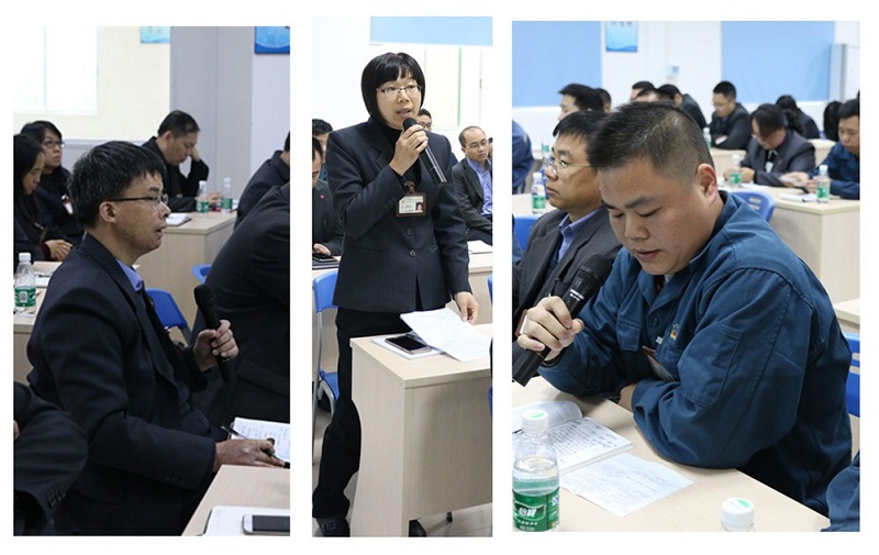 其后,质管部余秋惠部长在会上详细解读公司质量方针、质量文化,质量承诺等内容。研讨环节,余部长围绕如何提升人员质量意识和产品质量的主题,着重从客户需求、技术设计、原材料采购、各生产工序、质量检验等环节进行探讨。各相关部门、车间管理代表积极提出如何提升质量工作的建议。会议现场也回顾和分享了公司产品质量发展的历程,整个研讨会现场气氛热烈,氛围浓郁,充分体现了同事们对质量工作的关注与高度责任感。