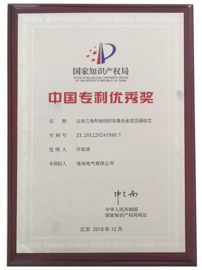 非晶合金立体卷铁心变压器研制成果获得中国专利优秀奖,并已广泛应用到轨道交通、数据中心、高速公路等空载时间长、节能水平要求较高的领域;