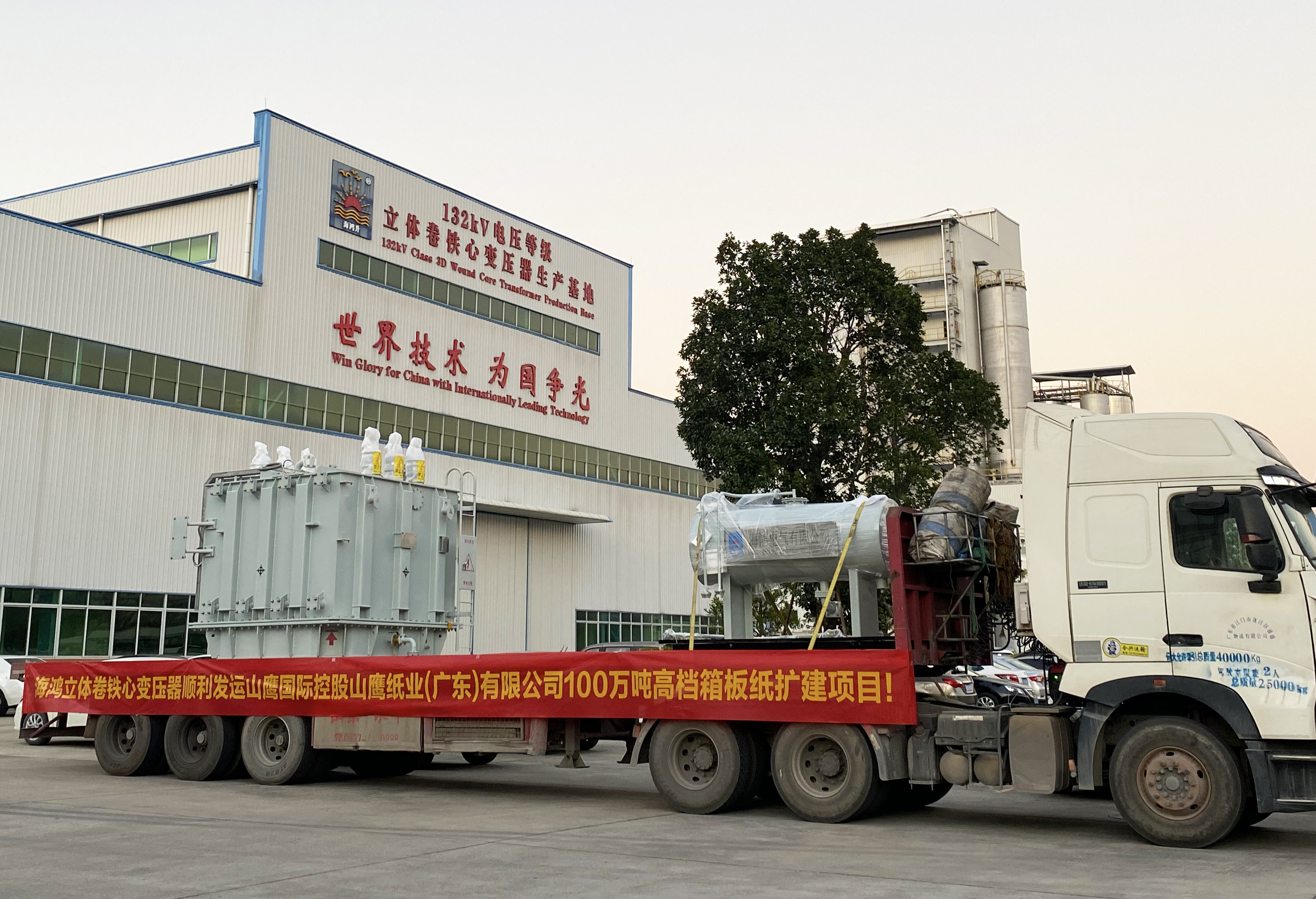 山鹰纸业(广东)有限公司100万吨高端包装纸项目正式投产,项目供配电采用九游会j9网站首页电气节能变压器。其中30000kVA大容量特种变压器实现立体卷铁心特种变压器在大容量的突破,其超强性能为项目安全生产提供有力的绿色保障。